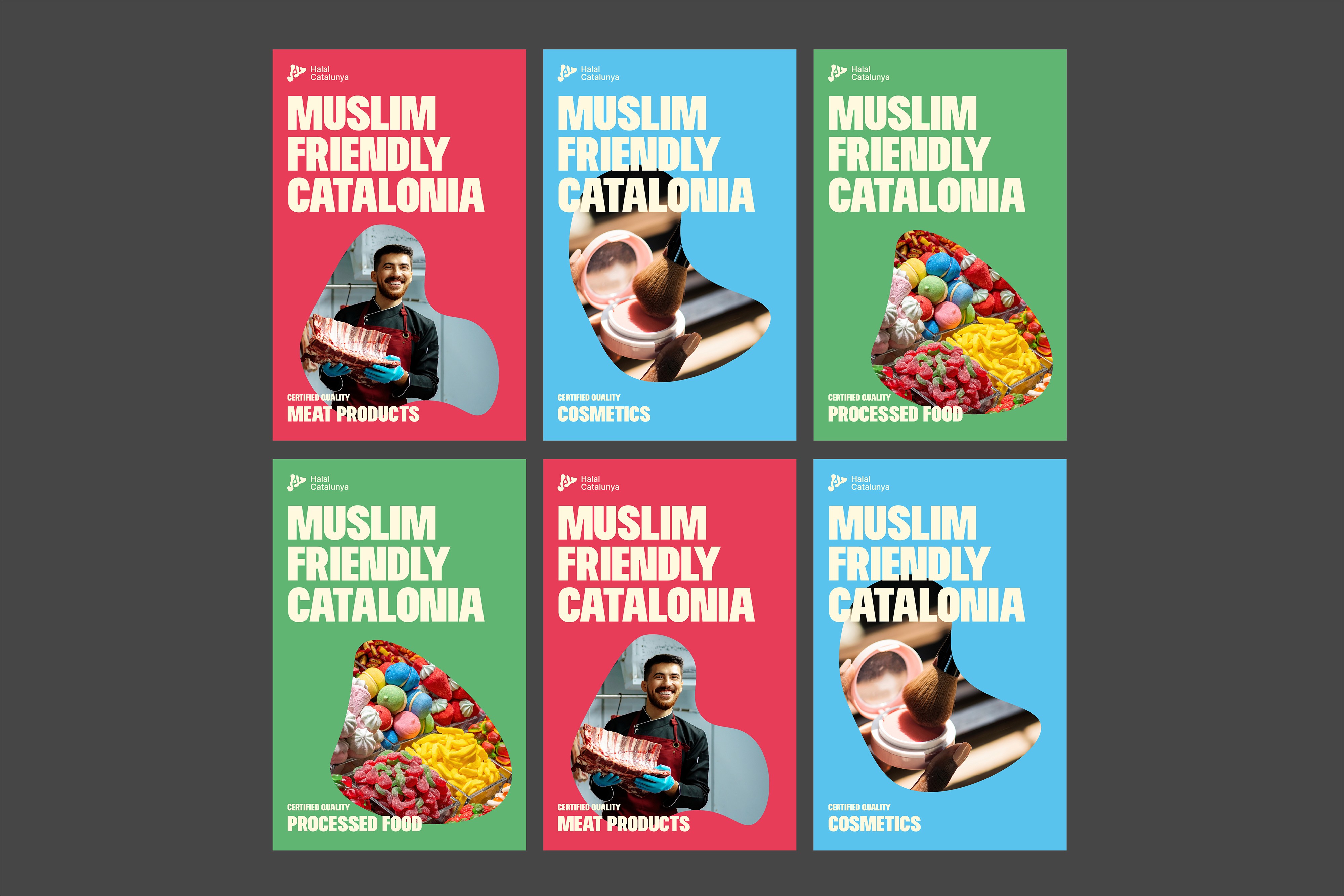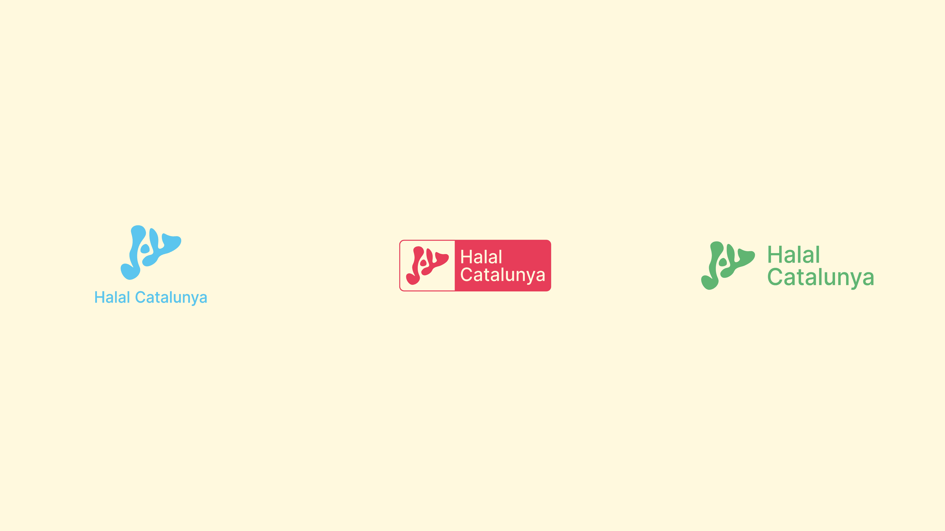 La identitat visual neix de la simbiosi entre la cal·ligrafia àrab de la paraula “Halal” i el perfil geogràfic de Catalunya.