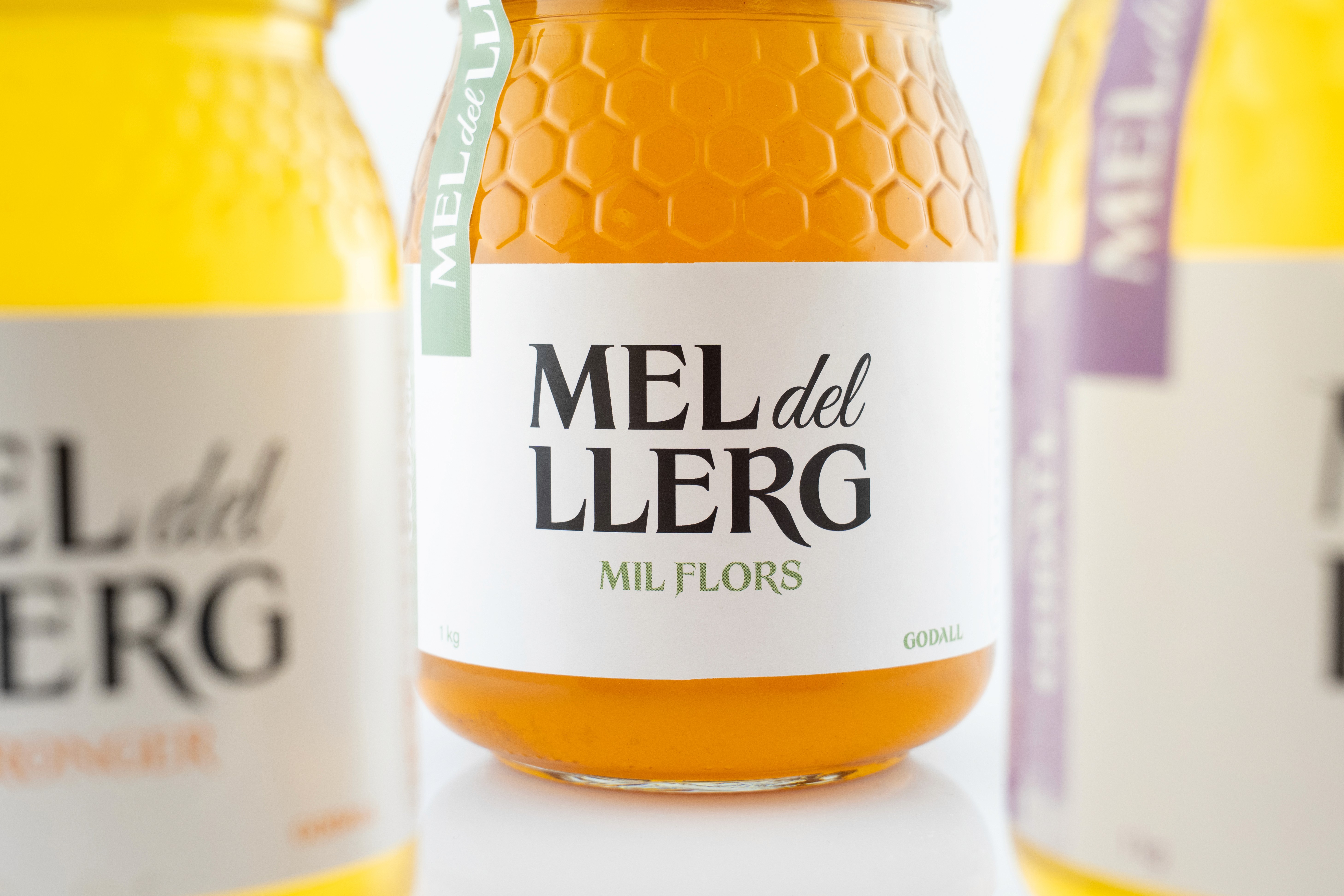 Per a la col·lecció de tres varietats, hem creat un sistema d’etiquetatge cromàtic basat en l’origen floral de cada mel. El resultat és un packaging honest que respecta el llegat familiar i facilita la tria del consumidor a través d’un codi visual clar i natural.